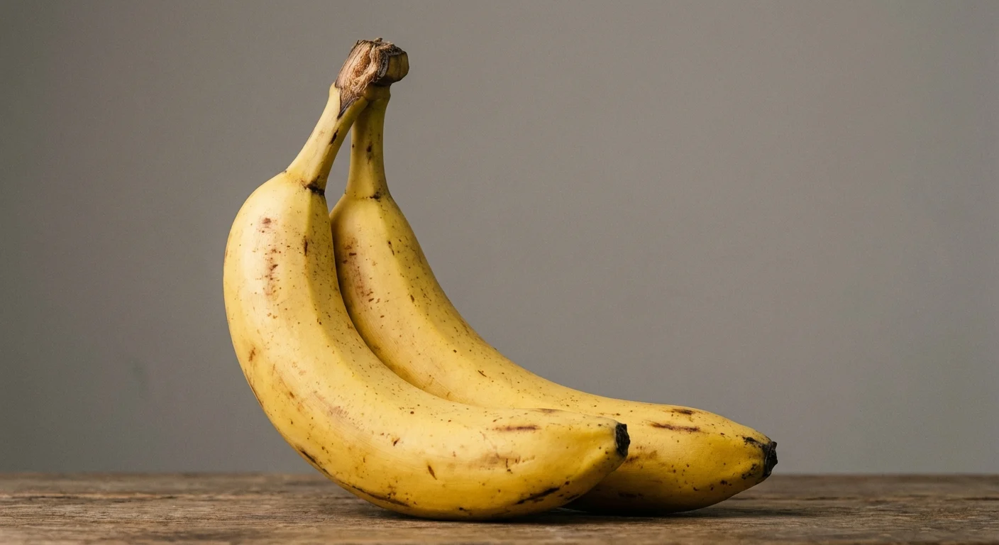 A studio photo of two bananas standing together, soft light, high detail. 73b3dde8