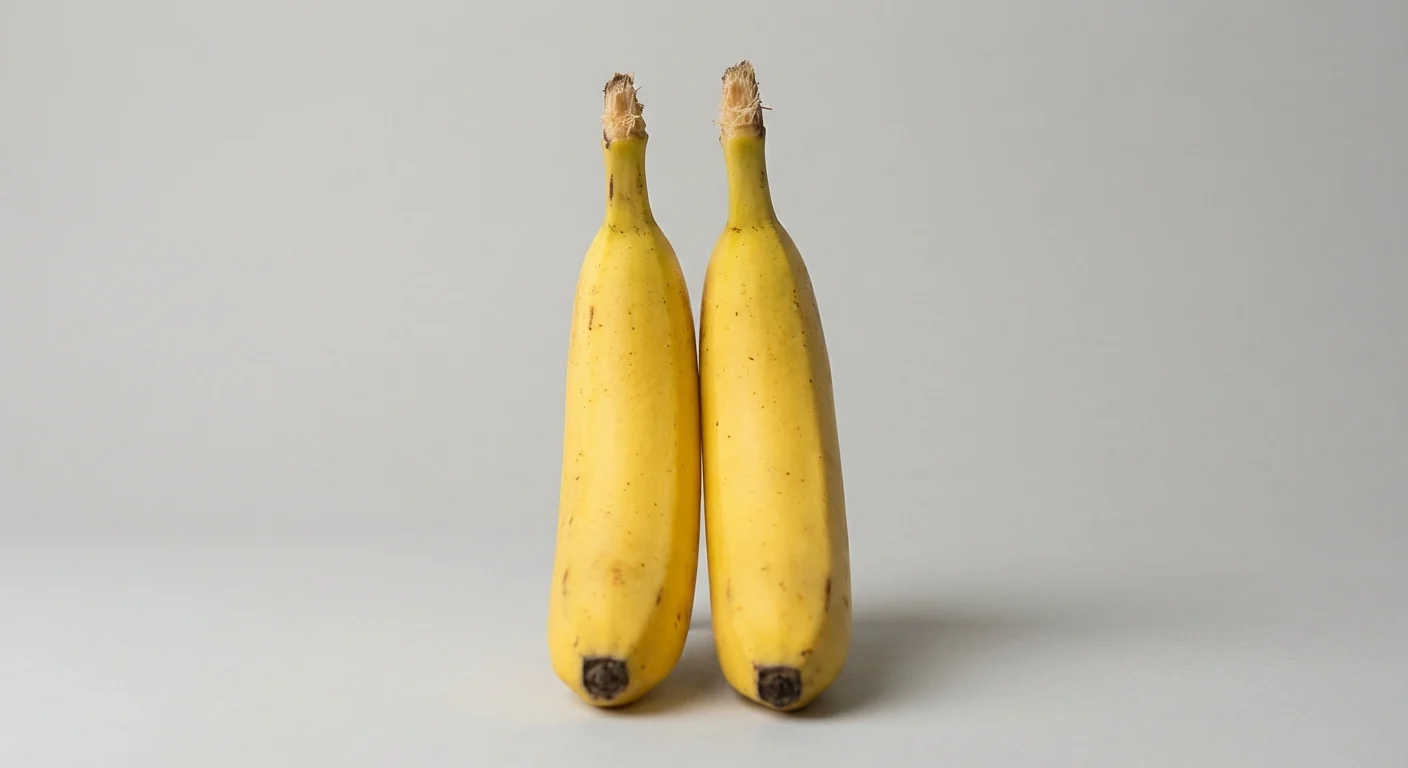 Studio photo, soft light, high detail. Scene setup: two bananas standing together. Soft light, fine detail rendering. Two bananas standing together, showcasing the photographic detail.