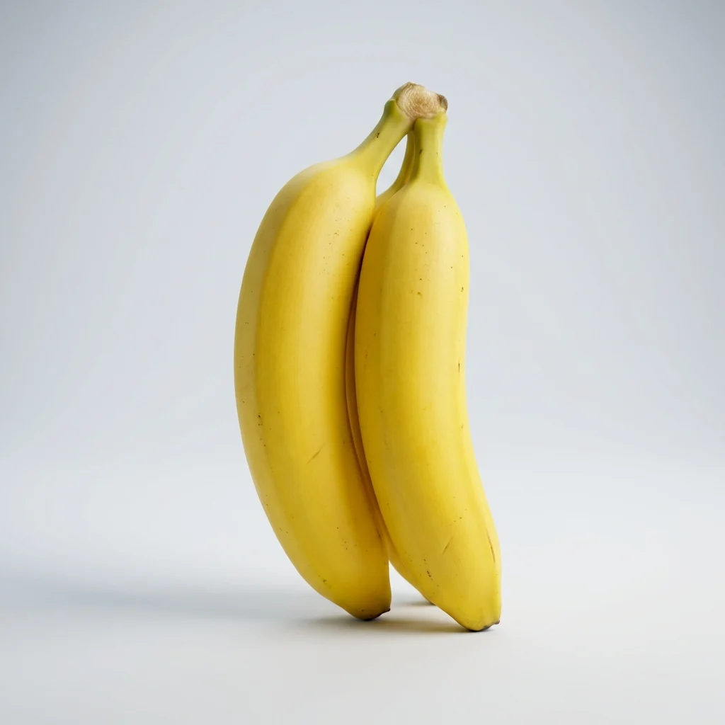 生成 1 张高质量的商业用途图像。无水印,无乱码文字。 [主题] 两根香蕉并排站立,完美对齐,展示其光滑、明亮的黄色皮肤和自然的弯曲形状。 [构图] 工作室拍摄;居中取景;特写视角,香蕉并排摆放,突出其纹理和形状。 [动作/状态] 香蕉处于静止状态,没有运动。 [场景] 工作室;白天;受控的室内照明,没有自然元素。 [风格] 现实主义摄影;数字摄影;超写实静物参考,极简主义美学。 [相机] 50mm 镜头;正面角度;浅景深,清晰聚焦在香蕉上,背景模糊。 [光照] 软盒照明;从一侧透过柔光灯光,形成柔和的阴影,突显香蕉的曲线。 [颜色/气氛…