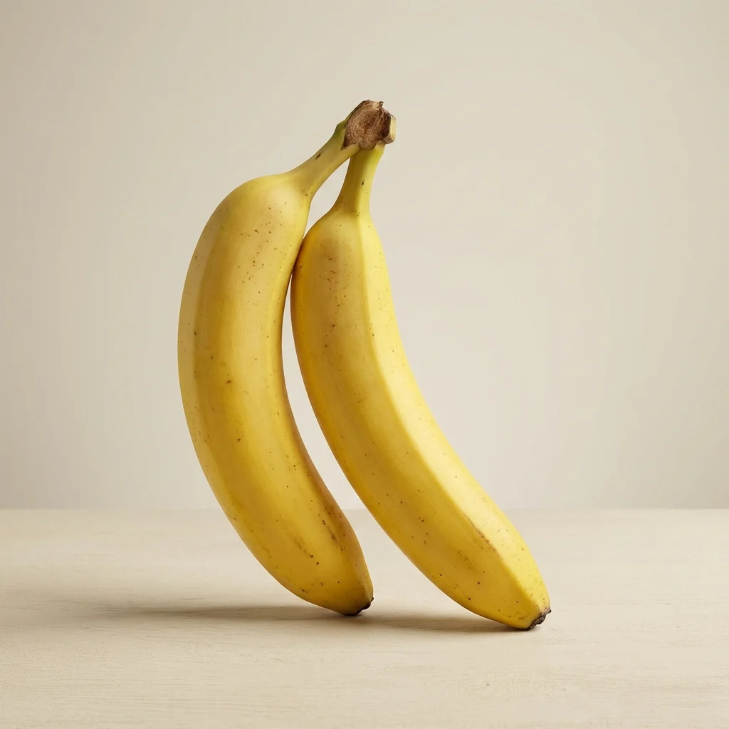 A studio photo of two bananas standing together, soft light, high detail. 6dd09e27